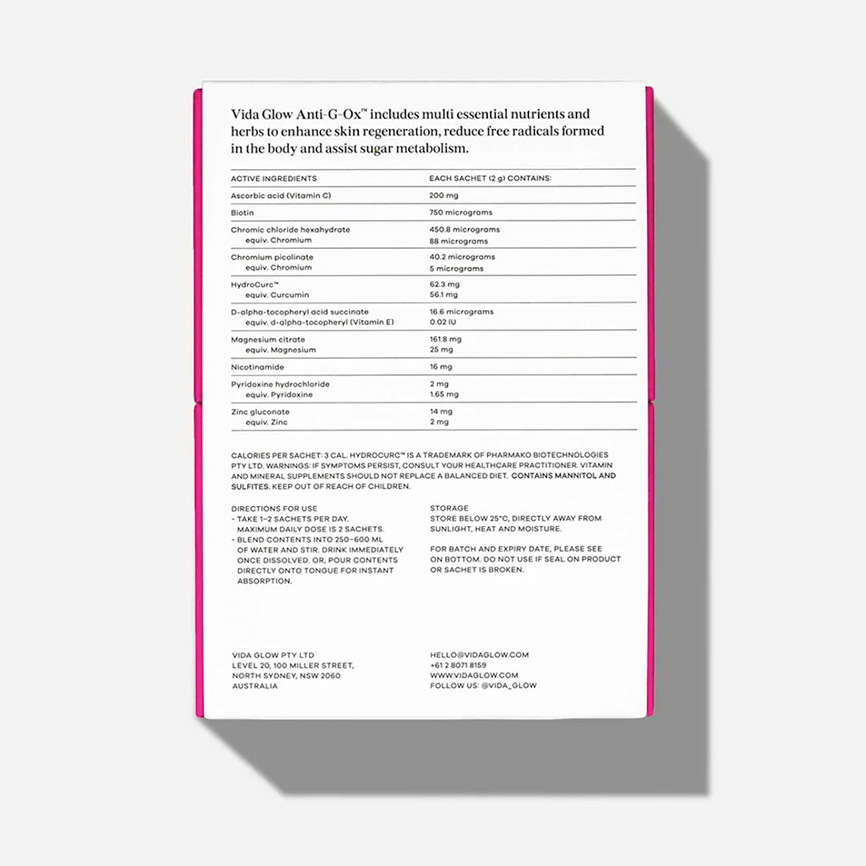 - Combats free radical damage, boosts skin vitality and promotes healthy sugar metabolism