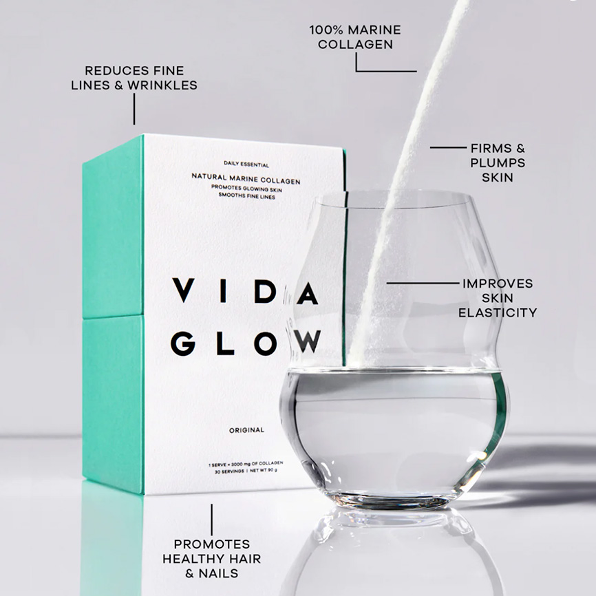 Radiant skin. Fuller hair. Stronger nails. Vida Glow Natural Marine Collagen – Original is a clinically proven collagen peptide supplement. In clinical trials, 70% of participants recorded significant improvement to crow’s feet wrinkles.*